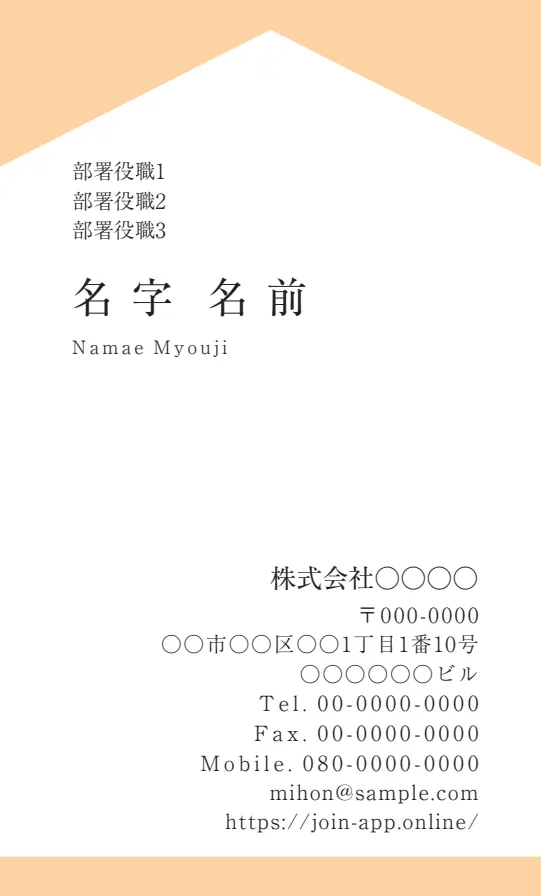 オレンジで塗られた目を引くベタのすぐ下に役職・名前を配置することで、「自然な流れで主要情報を確認できる」考えられたデザインとなっています。
