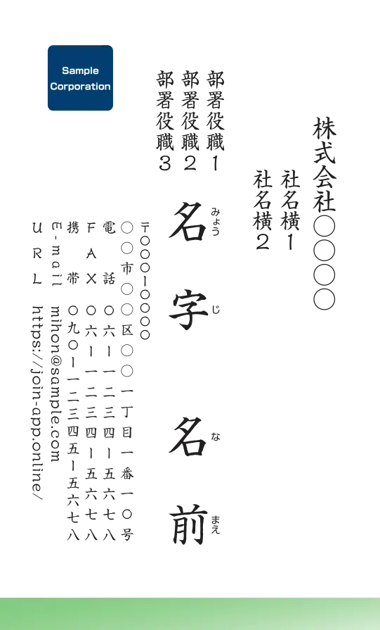 入力項目を空にすることで余白扱いとなりますので、社名2や役職1・3を余白にすることも可能です。