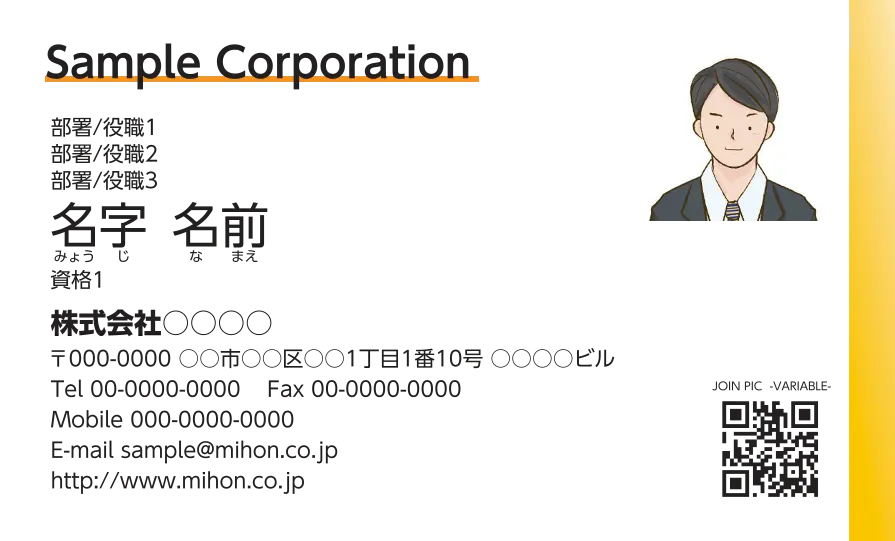 会社ロゴ・顔写真など用画像・QRコードがアップロード可能なデザインです。