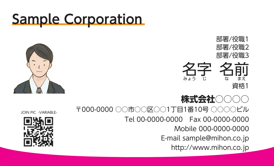 会社ロゴ・顔写真など用画像・QRコードがアップロード可能なデザインです。