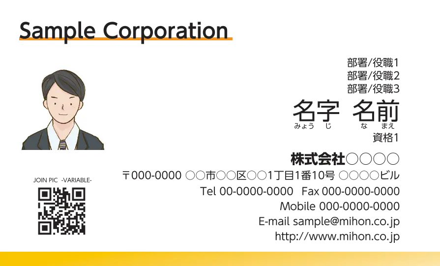 会社ロゴ・顔写真など用画像・QRコードがアップロード可能なデザインです。
